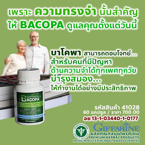 ✔ พรมมิ (บาโคพา มอนนิเอริ) บาโคพา สารสกัดจากพรมมิ ผสมวิตามินซี วิตามินบี 12 และวิตามินบี 6