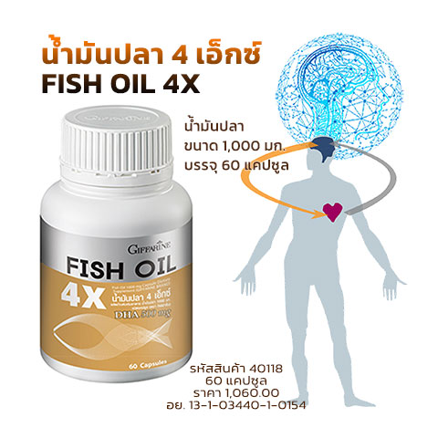 ✔ น้ำมันปลาดีเอชเอสูง Fish Oil 4X ◉ น้ำมันปลา 4 เอ็กซ์ (ขนาด 1,000 มก. บรรจุ 60 แคปซูล)