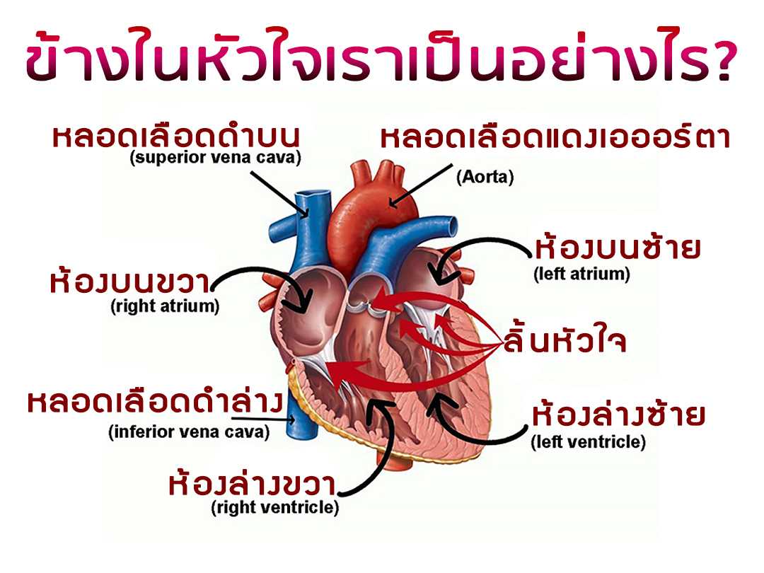 ◉ หัวใจ เป็นอวัยวะกล้ามเนื้อซึ่งสูบเลือดทั่วหลอดเลือดไปยังส่วนต่าง ๆ ของร่างกาย หัวใจมนุษย์ปกติเต้น 72 ครั้งต่อนาที สูบเลือดประมาณ 4.7-5.7 ลิตรต่อนาที