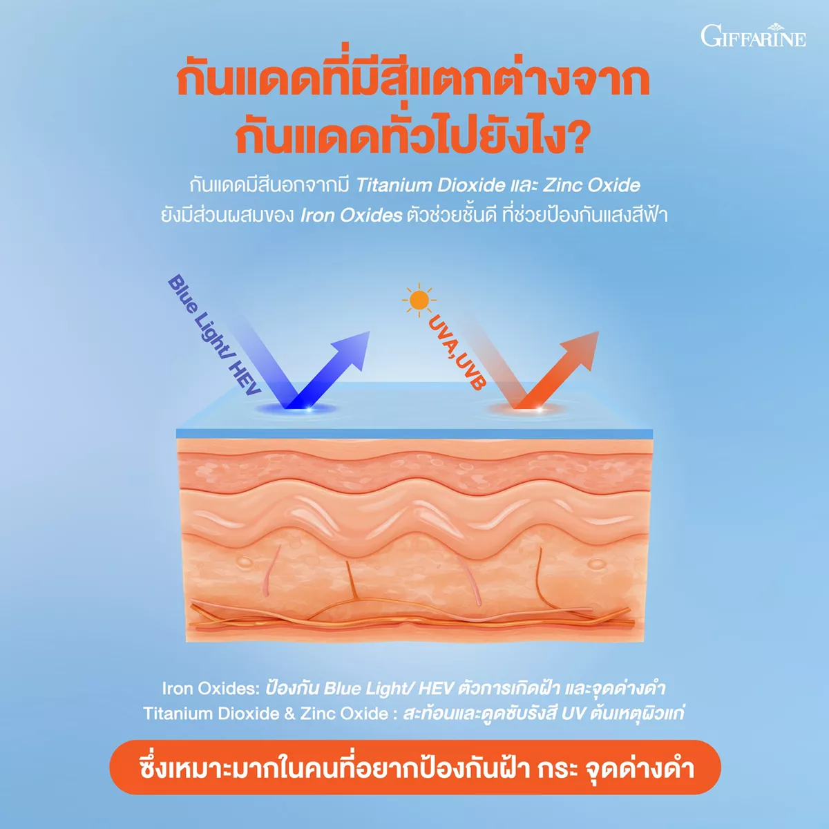 ✨Iron oxides เสริมการปกป้องผิวจากแสงสีฟ้า Blue Light / HEV